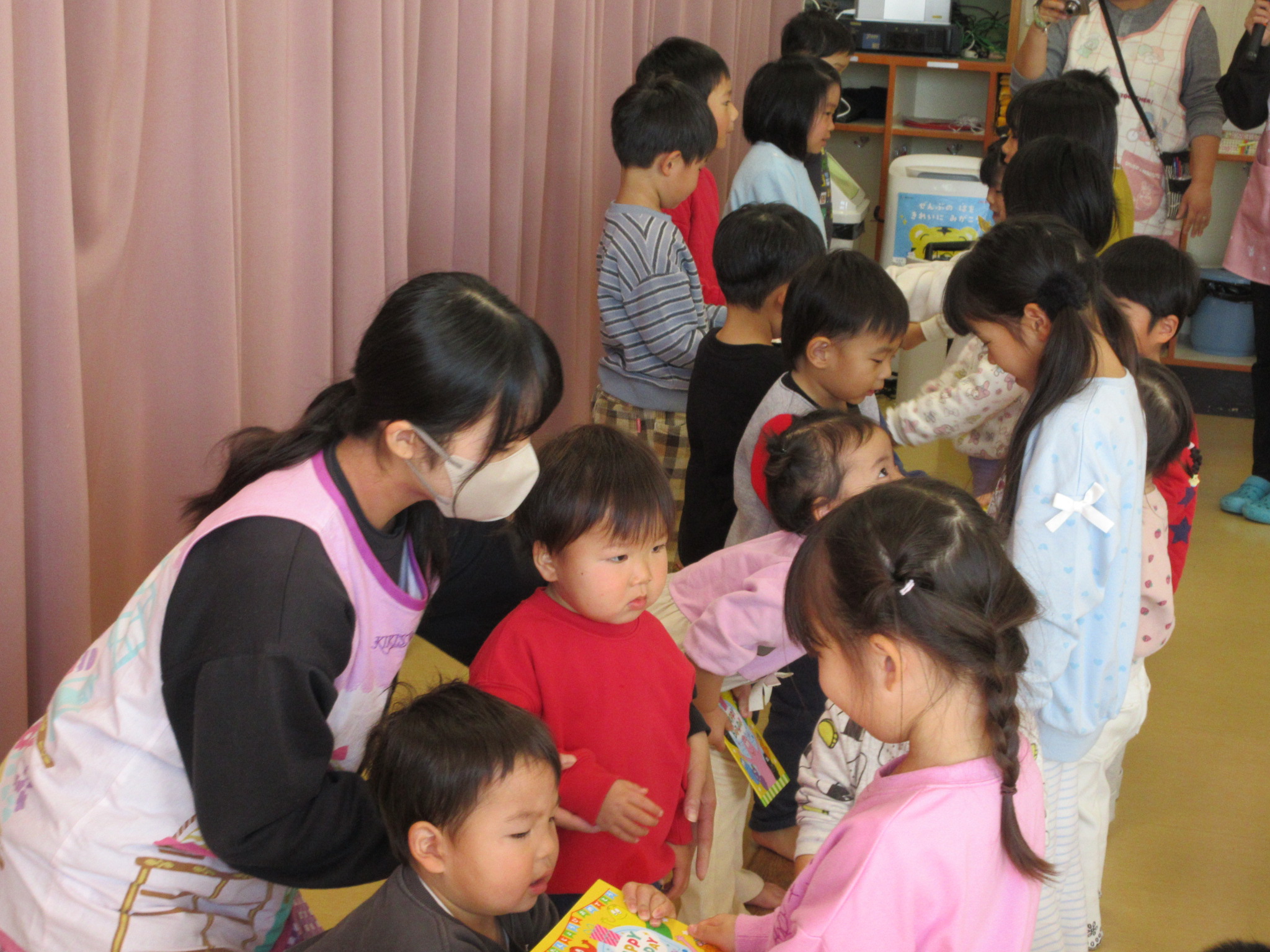 ○ 11月の予定 ○ 4日(火)安全点検・消毒日 リトミック指導日 6日(木)消防署見学(4・5歳児) 7日(金)親子レクレーション(3・4・5歳児 保護者会) 12日(水)運動教室(2~5歳児) 14日(金)不審者対応避難訓練 17日(月)安全点検・消毒日 三園交流(八日市北小秋祭り) 17・18日(月・火)身体測定 18日(火)リトミック指導日 21日(金)図書館おはなし会(1歳児) 26日(水)環境キャラバン隊(5歳児) 28日(金)お誕生会 職員会議 ○ 12月の予定 ○ 11日(木)交通安全教室 20日(土)大掃除 24日(水)クリスマス会 26日(金)職員会議 |